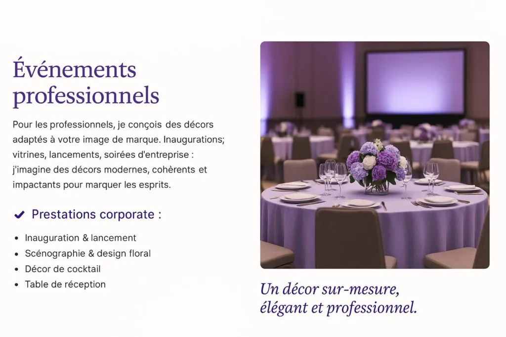 • événements professionnels (lancements, séminaires, inaugurations),